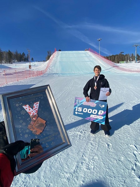 В минувшие выходные в ГК «Солнечная Долина» в Челябинской области прошли соревнования Первенство России по сноуборду в дисциплине слоуп-стайл. Среди юниоров отличился воспитанник Кирилла Трояна — Максим Воробьёв — он занял 3 место среди юниоров.